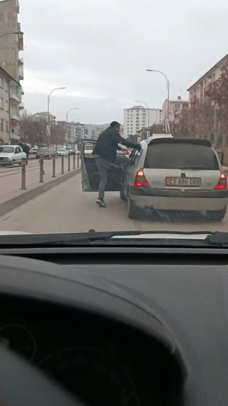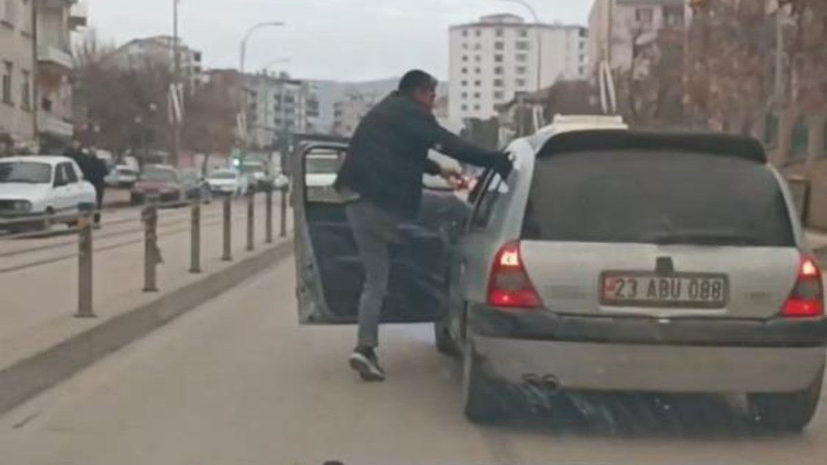Sürücüye hakaret savuran şahıs, ardından ilerleyen aracın kapısını açarak sürücüye saldırmaya başladı.