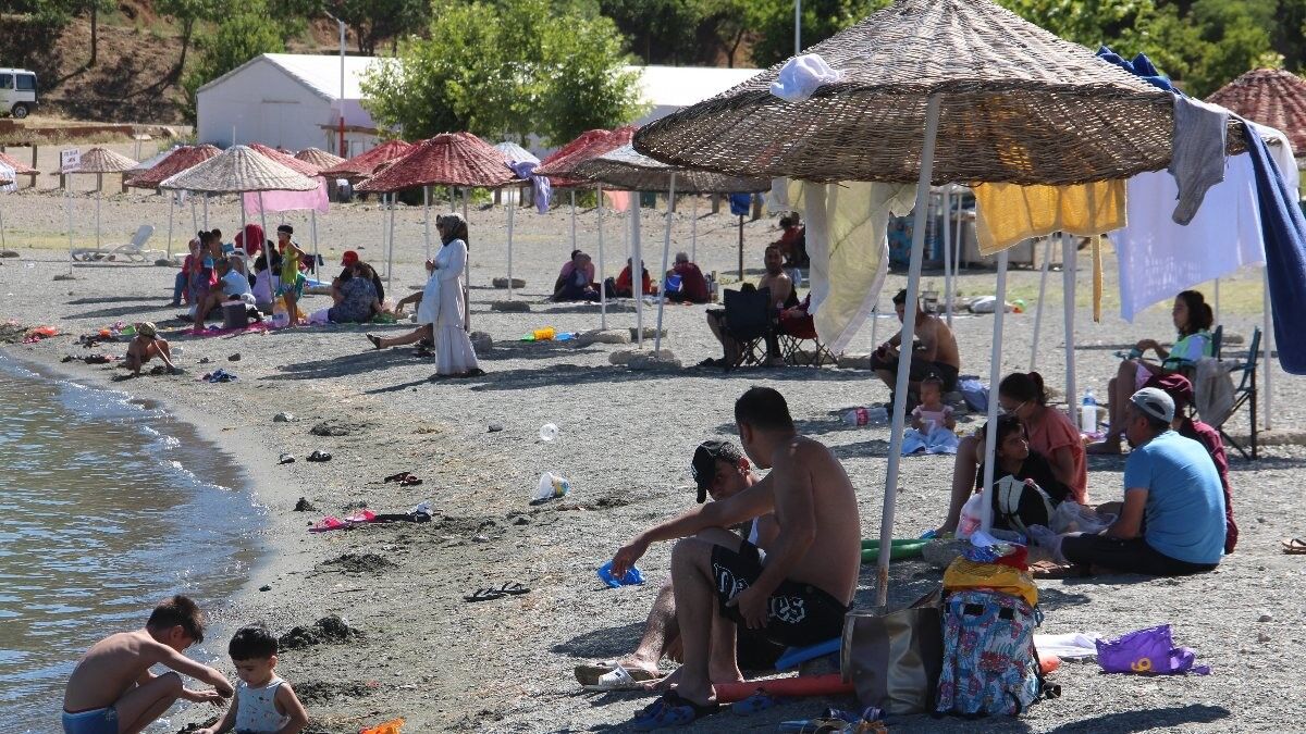 Sıcaktan bunalan ve serinlemek isteyen vatandaşlar ise hafta sonunu da fırsat bilerek Hazar Gölü'nün kıyısında bulunan plajlara akın etti.
