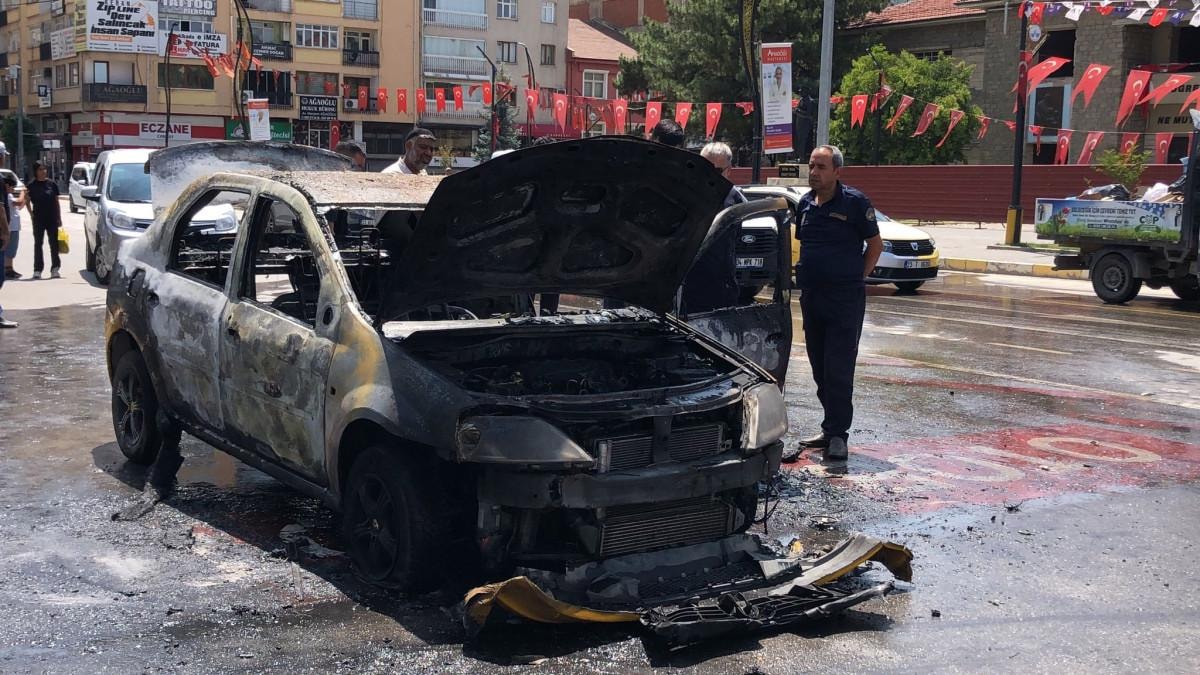 Çakmağın çakılması ile otomobilin alev alması bir oldu.