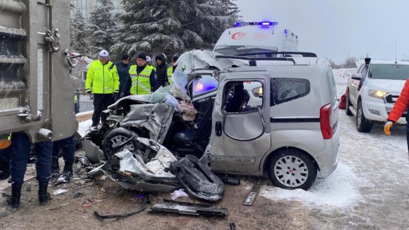Elazığ'da kar ve buzlanma nedeniyle kontrolden çıkan hafif ticari araç, park halindeki tıra arkadan çarptı. Feci kazada araçta bulunan karı-koca yaşamını yitirdi.