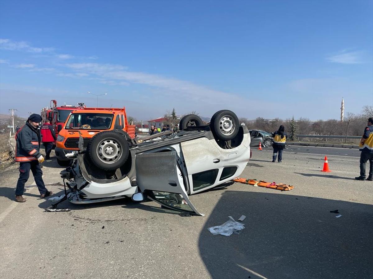 Çarpışmanın etkisiyle araçlardan biri yol kenarına devrildi, diğeri bariyerlere çarparak durdu.