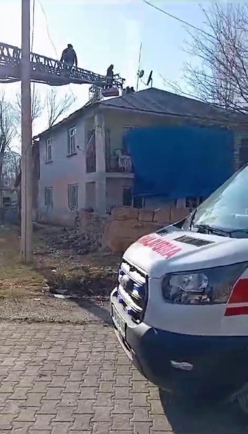 Olay yerine gelerek yangına müdahale eden itfaiye personelinden C.S., çatıda yangına müdahale ederken demir sacda ayağının kayması sonucu aşağı düştü.