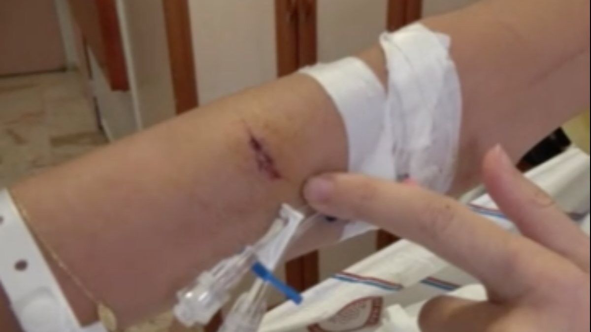 Her tarafım kanıyordu ama görüp de panik yapmak istemedim. Bıçağı boğazıma dayadı. Ben o sıra yalvardım. Bıçağı tutup saçımı kesti. Beni darbederek yorulmuştu. Bir fırsatını bulup kapıya çıktım. Ben darp esnasında sürekli bağırıyordum. Beni duyup yardım etsinler diye. Onlar da duyup kapıya çıkmışlar ama korkudan ne yapalım diye düşünmüşler. O esnada bir kadının kapısını açık görünce içeri girdim ve polis ile ambulansı arayın, yaralıyım yardım edin bana dedim. O esnada zaten polis aranıldı, sağlık ekipleri geldi. İlk müdahale yapıldı. Durum ciddi. Akciğerim söndüğü için cihaza bağlıyım. Çok kötü ağrılarım var. Akciğerimle alakalı sönme tekrar devam ederse operasyonda geçirme durumum varmış."