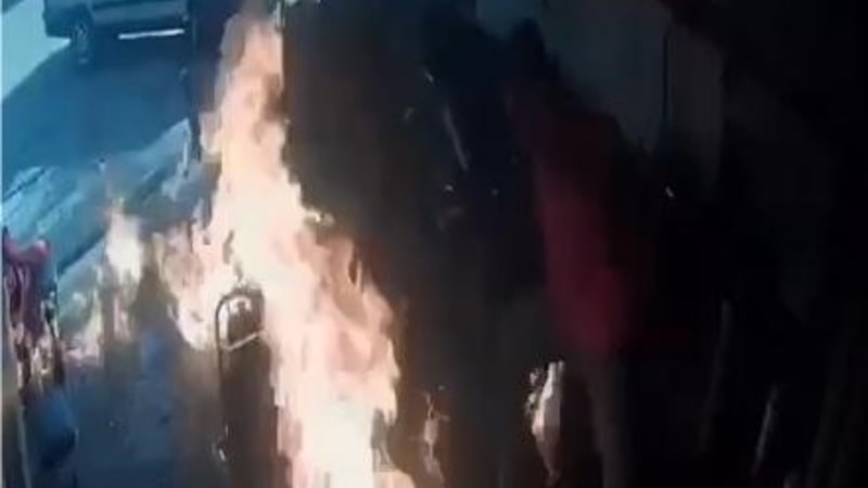 Yangını söndürmeye çalışan kişilerden biri, elindeki şişeyi açıp içindeki yanıcı maddeyi alevlere dökünce yangın bir anda büyüdü. Alevlerin arasında kalan iki kişi panikle dışarı kaçtı.