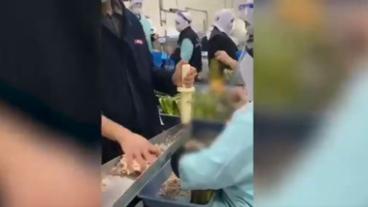 Söz konu görüntülerde, imalathane çalışanlarının eldiven kullanmadan ton balıklarını elleriyle paketledikleri görüldü.