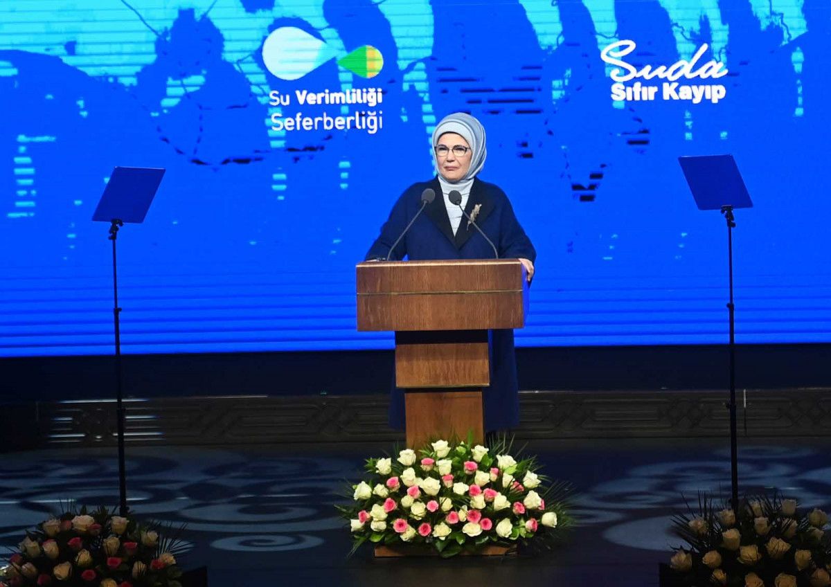 Emine Erdoğan, dünyanın erişilebilir tatlı su miktarının, toplam su varlığının yüzde 1'inden az olduğunu belirterek şunları kaydetti: