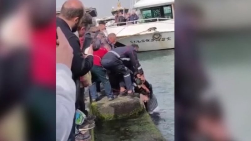 İstanbul Eminönü'nde vapurdan denize düşen kişinin kurtarılma anı, cep telefonu tarafından kaydedildi.