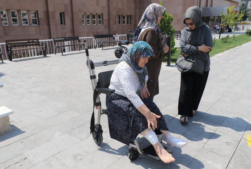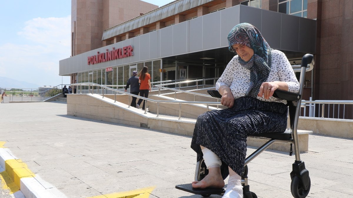 Düşürdükten sonra ayağımda terlik. Ettim ki ayağımla müdahale edeyim. Terliğimin oradan dişlerini soktu ayağımın altını tamamen bütün aldı kaldırdı. Ayağımın altı hiç yok. Daha sonra kolum, başım birçok yerimi ısırdılar. Çok bağırdım. Kız kardeşimin kayını ile eltisi kavuştular. Onlar kurtardı. Getirdiler hastaneye.
