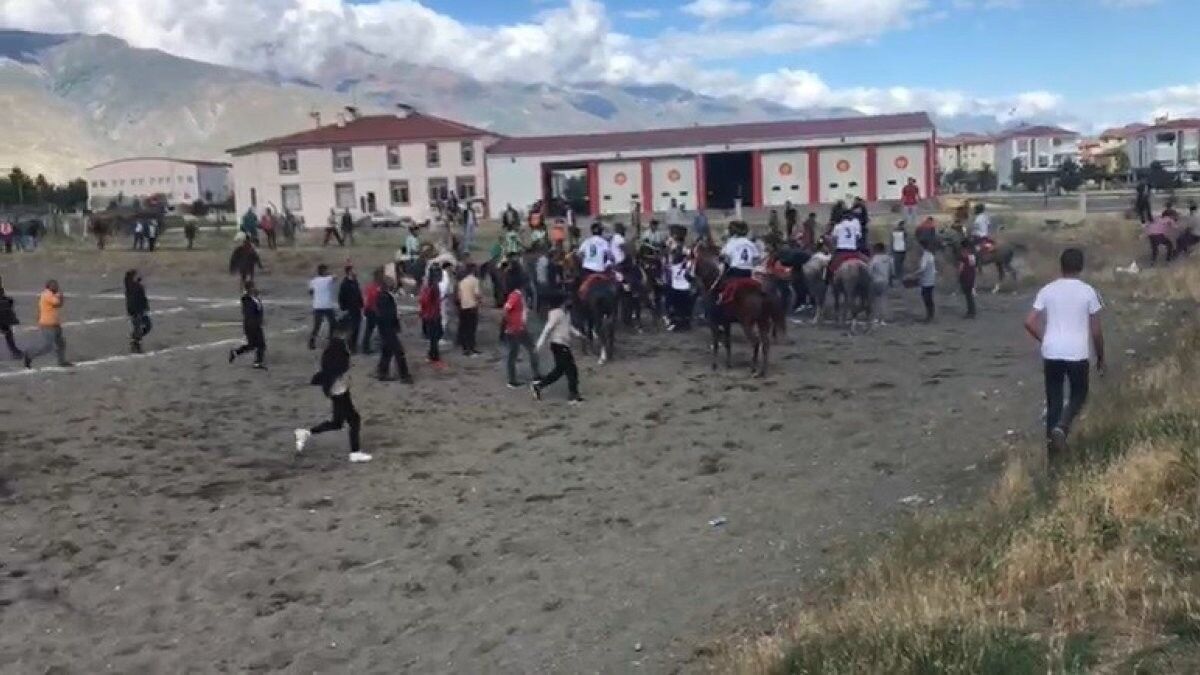 İHA’nın haberine göre; Tercan ilçesinden gelen atlı spor kulübü ile karşılaşmayı izleyen Erzincanlı seyirciler arasında, karşılaşma sürerken yapılan itirazlar üzerine tartışma başladı.