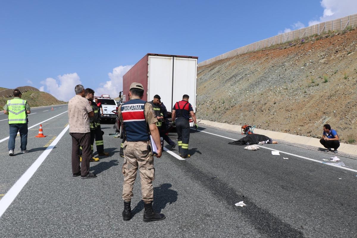 Sabah saat 08.30 sıralarında direksiyon hakimiyetini kaybeden sürücü, Sakaltutan Geçidi’nde İran uyruklu Ali Rahimi’nin kullandığı 27 AA 129 plakalı tıra arkadan çarptı.