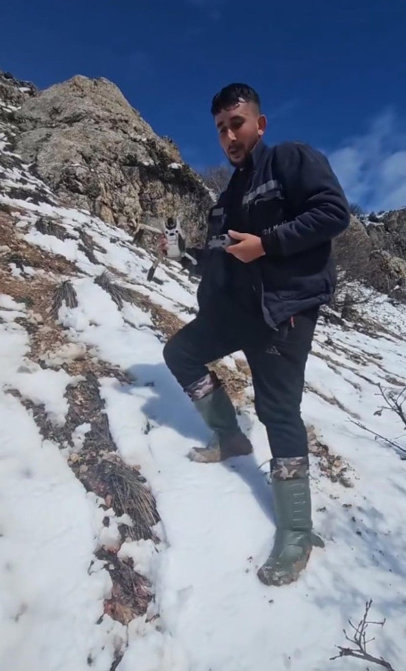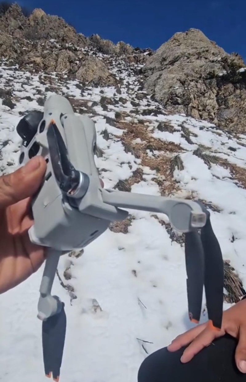 Kartalın bir süre sonra drone'u bir kayanın üzerine bıraktığı belirlendi. Cihazın konum sinyalini takip eden Kaya ve arkadaşı, drone'a ulaşarak zarar görmeden geri aldı.