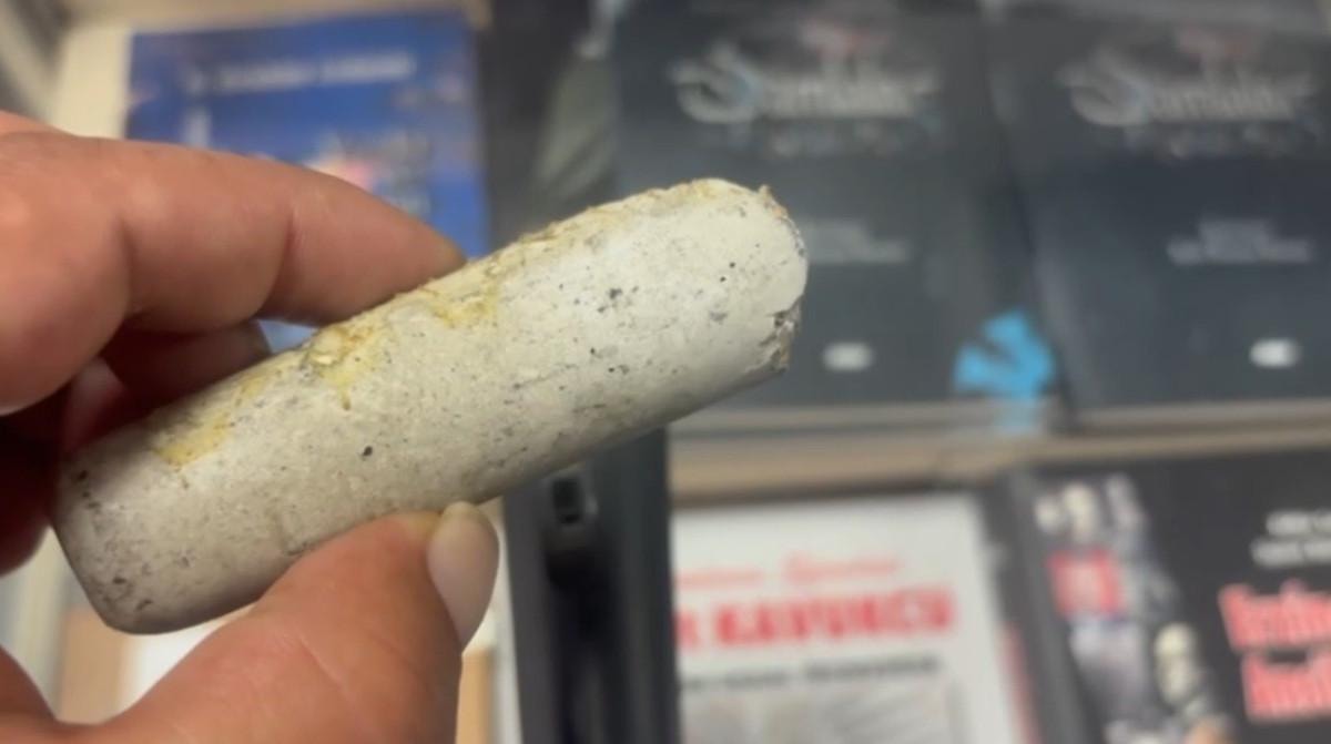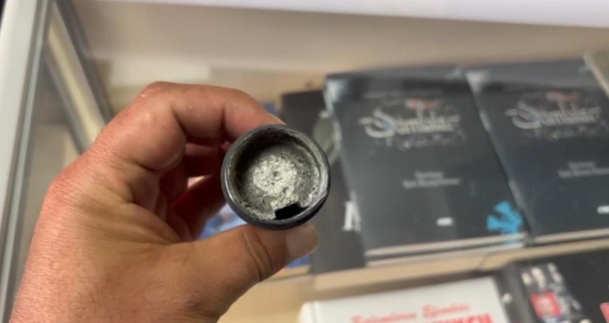 Kutuyu açıp ürünü detaylı incelediğinde, mikrofonun içine ağırlık katmak amacıyla beton döküldüğünü fark eden vatandaş, o anları cep telefonu kamerasıyla kaydetti.