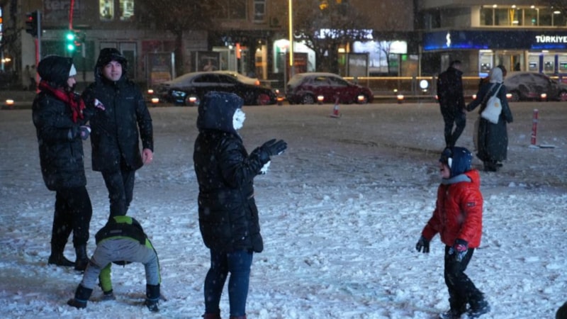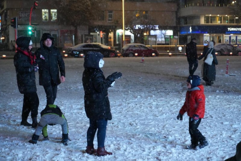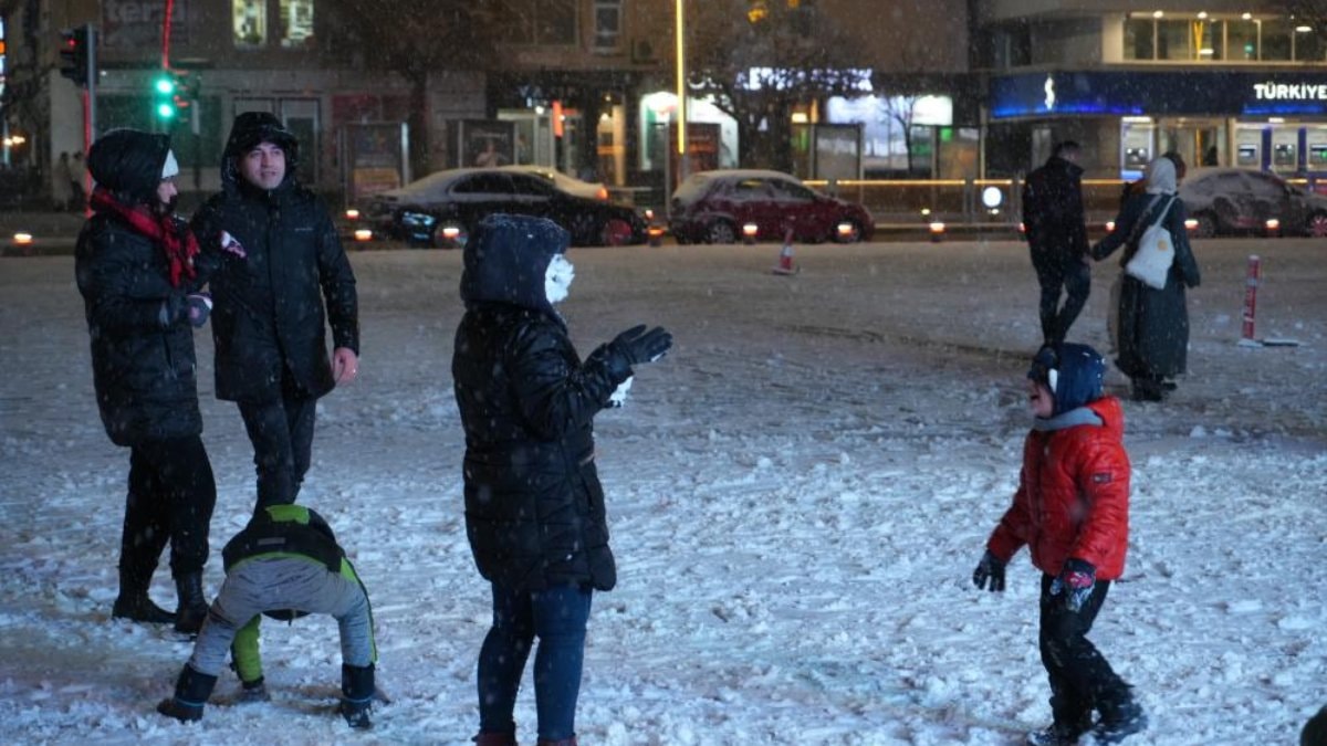 Evlerinden dışarı çıkan vatandaşlar cadde ve sokaklarda kar yağışı altında yürüyüş yapmanın, kartopu oynamanın keyfini yaşadı.