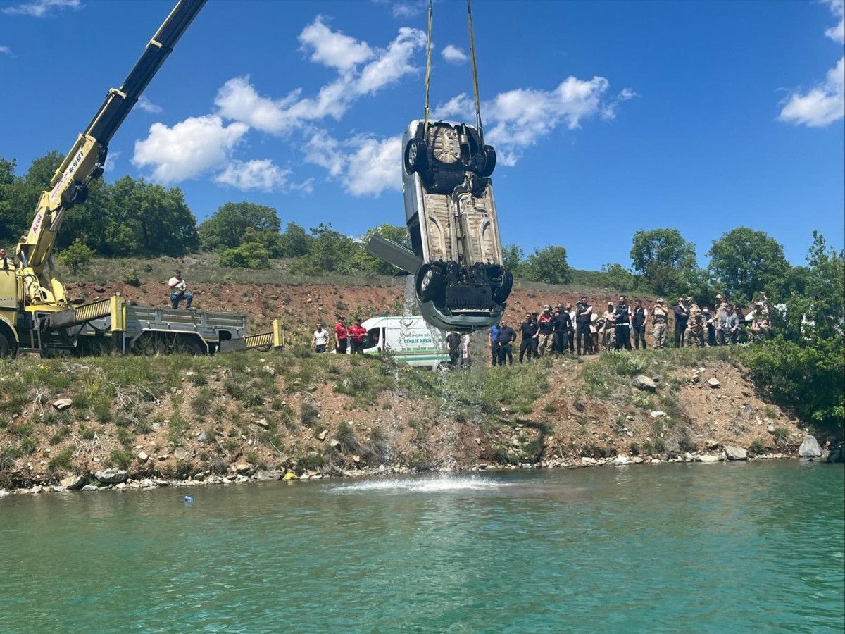 6 METRE DERİNDE ARACIYLA BİRLİKTE CESEDİ ÇIKARILDI