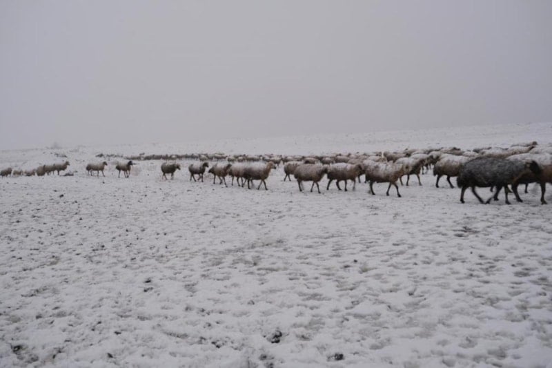 İlkbaharda Erzincan’ın ilçelerinden yaylalara çıkarılan koyun sürüsü kara yakalandı.