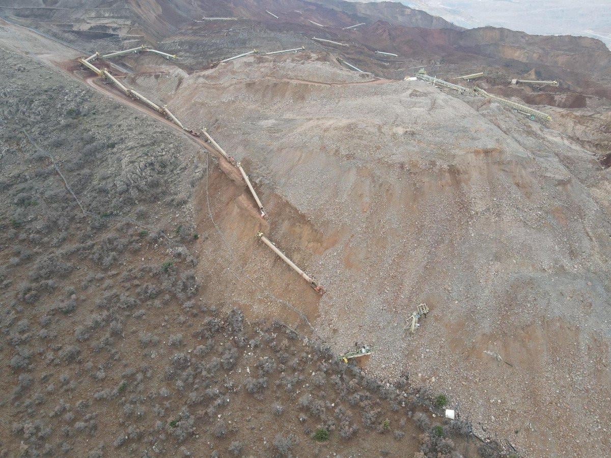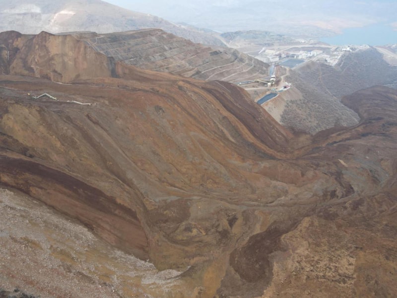 İliç ilçesinde 2010 yılı Aralık ayından beri altın üretimi yapılan Çöpler Maden Sahası'nda çıkarılıp istiflenen toprak, dün saat 14.28'de kaydı.