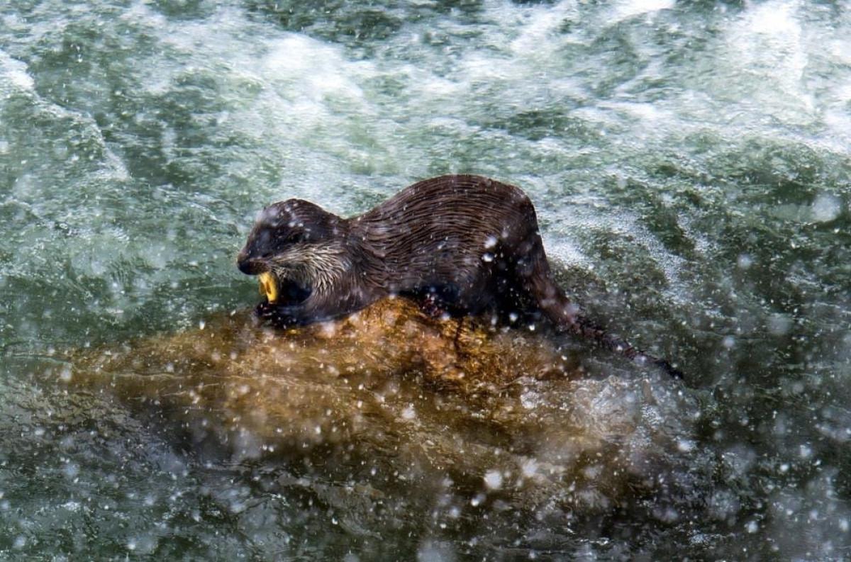 Dünya Doğa ve Doğal Kaynakları Koruma Birliği (IUCN) tarafından nesli tükenmekte olan hayvanlar kategorisinde yer alan su samuru, Fırat Nehri kenarında görüntülendi.