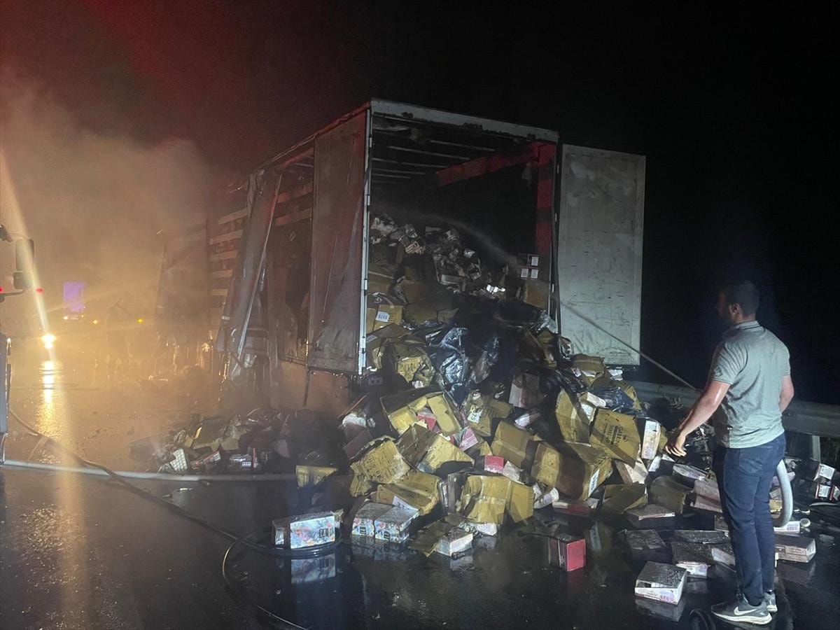 İtfaiye ekipleri ise yaklaşık bir saat süren müdahalenin ardından tırdaki yangını söndürdü.