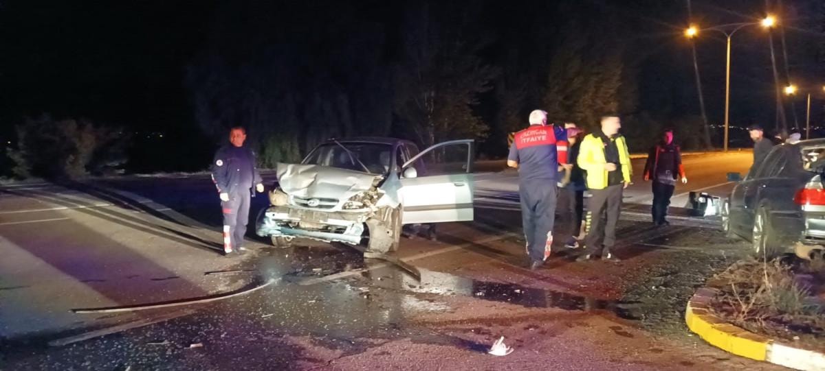 Eski Kemah yolu üzerinde, kavşaktan çıkan otomobil ile çevre yolu üzerinden seyir halindeki otomobil çarpıştı.