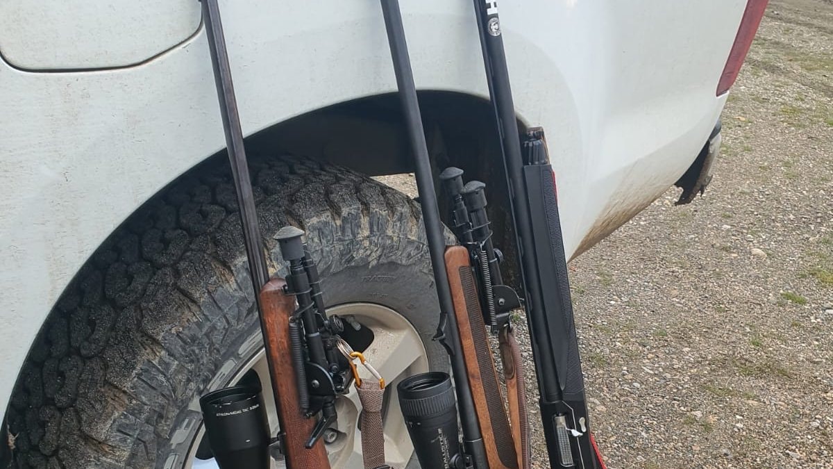 2 kişinin bulunduğu araçta yapılan aramada vurulmuş bir yaban keçisi ve 2'si yivli olmak üzere 3 tüfek ele geçirildi.