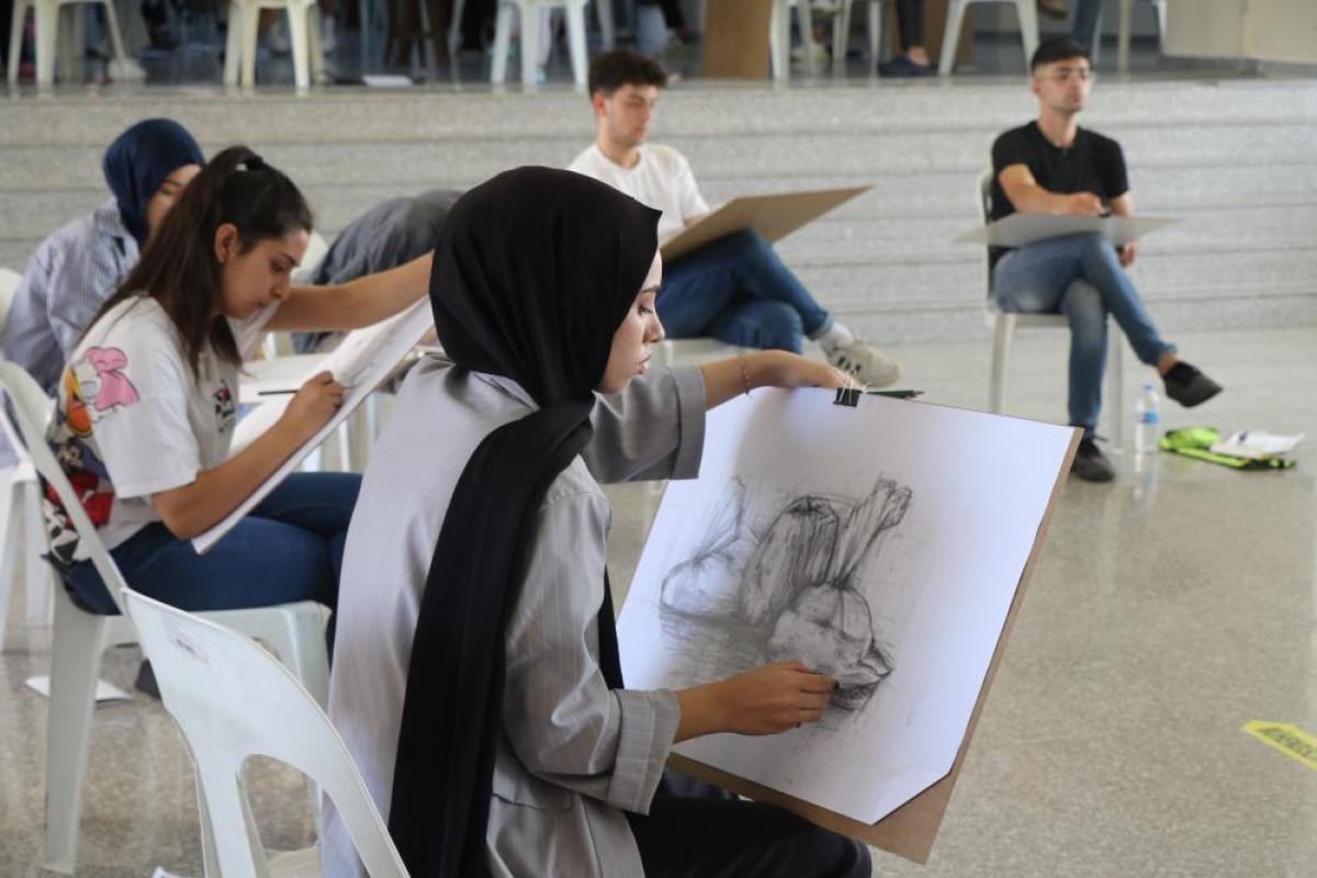 Sınavın ilk oturumunda masaya konulan objeleri çizen öğrenci adayları, sınavın ikinci oturumunda ise Yusuf Dikeç'in portresinin yarısını mekanik olarak çizdi.