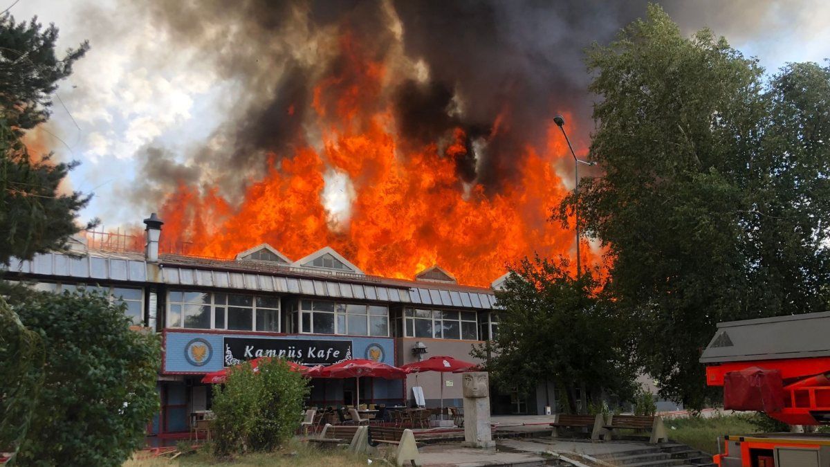 Kampüste bulunan yemekhanededen bir anda alevler yükseldi.