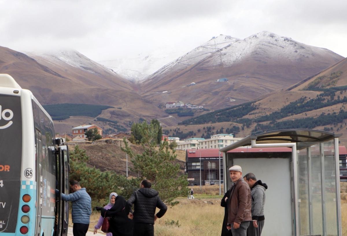 En düşük hava sıcaklığının 1 derece hissedildiği Palandöken Dağı'nın zirvesi ise akşam saatlerinde beyaza büründü.