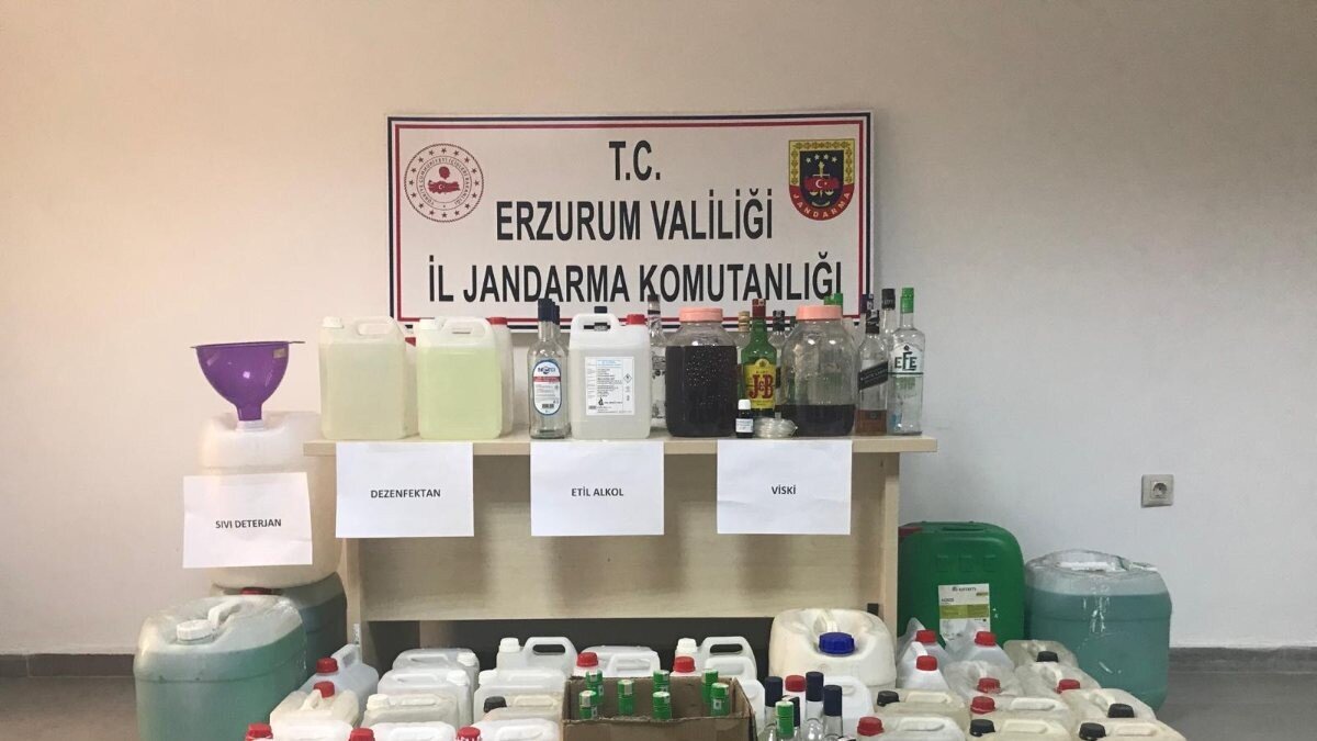 Erzurum İl Jandarma Komutanlığı KOM Şube Müdürlüğü ile Yakutiye İlçe Jandarma Komutanlığı ekipleri, 1 kişinin iş yeri olarak kullandığı dairede sahte alkol ve dezenfektan ürettiği bilgisine ulaştı.