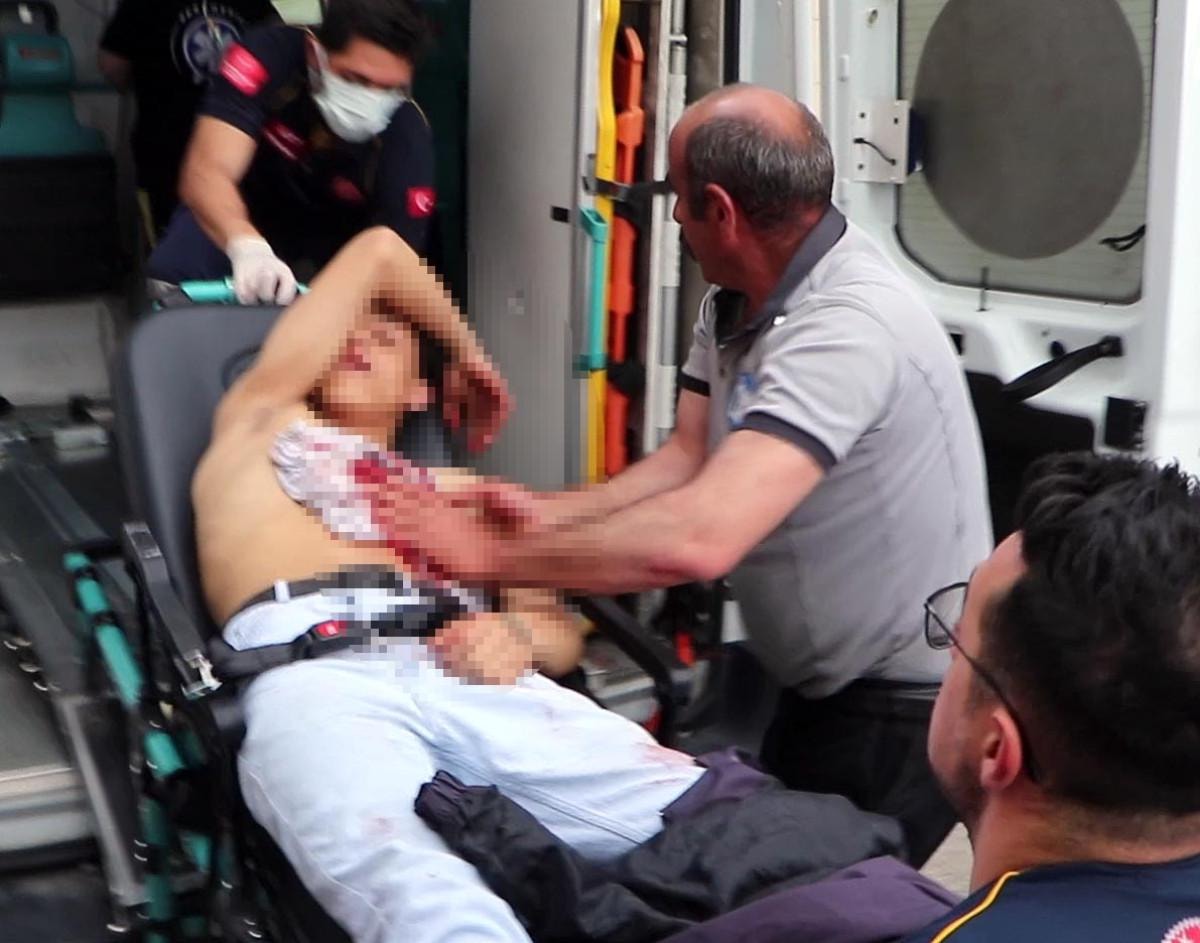 Çevredekilerin yardımıyla bir sandalyeye oturtulan D.Y., olay yerine gelen ambulansla Atatürk Üniversitesi Araştırma Hastanesi'ne kaldırıldı.
