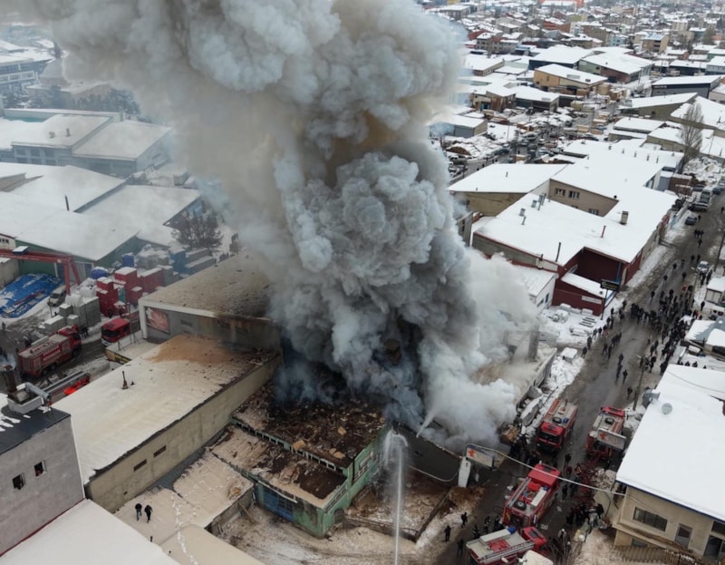 Erzurum'un Yakutiye ilçesinde 17 Ocak 2026’da mobilya üretimi yapılan bir iş yerinde patlamanın ardından yangın çıktı.