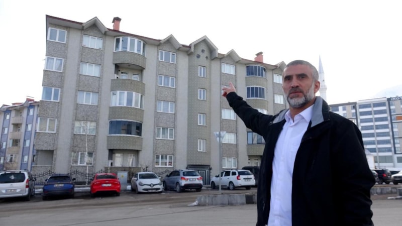 Erzurum'un Palandöken ilçesi Atatürk Bulvarı'nda yöneticiliğini yaptığı 6 katlı apartmanın çatısında biriken karları temizlemek isteyen Hüseyin Ergün, bacaya sardığı ipin bir ucunu da beline bağlayarak çalışmaya başladı.