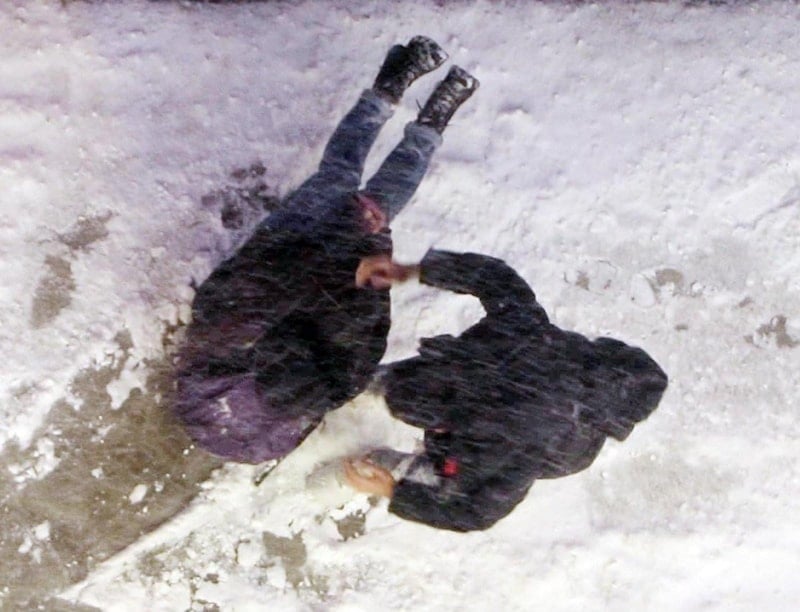 Ancak rüzgar her ikisini de uçurup götürünce, buzlu zeminde düşmeler yeniden yaşandı. Düşenlerin kimi yerden güçlükle kimisi de vatandaşların yardımıyla kalkabildi.