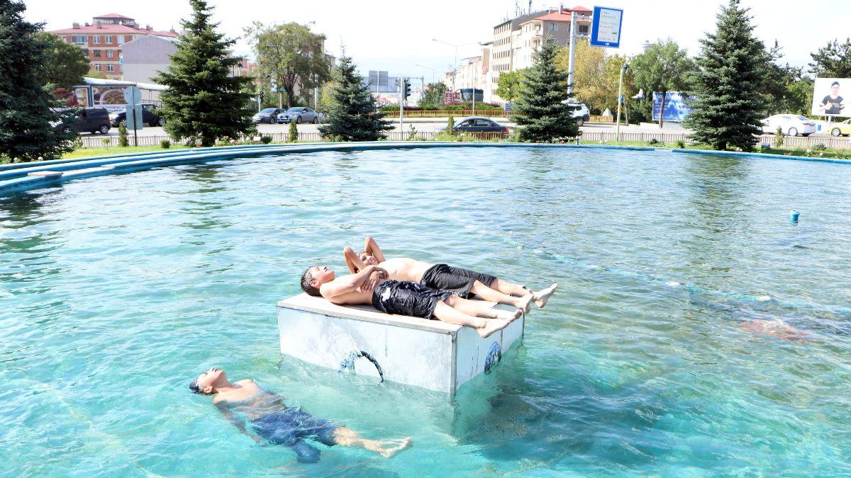 Sıcaktan bunalan Erzurumluların büyük bölümü gölge alanlarda zaman geçirirken, bazı çocuklar da şehrin en işlek merkezlerindeki süs havuzlarına girerek, serinlemeye çalıştı.