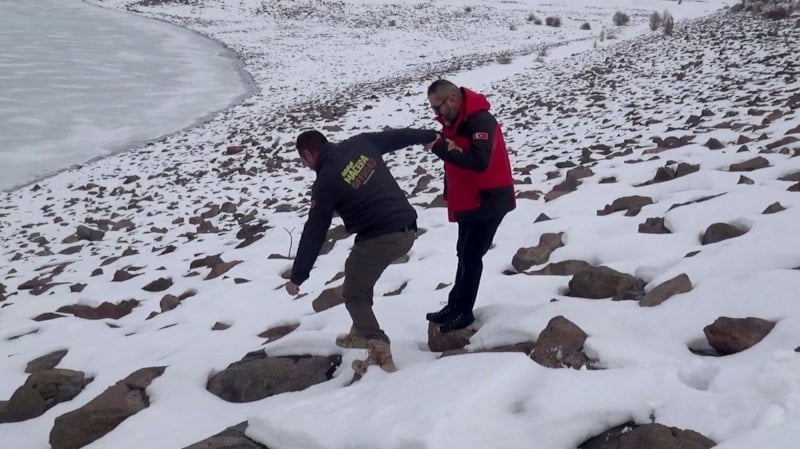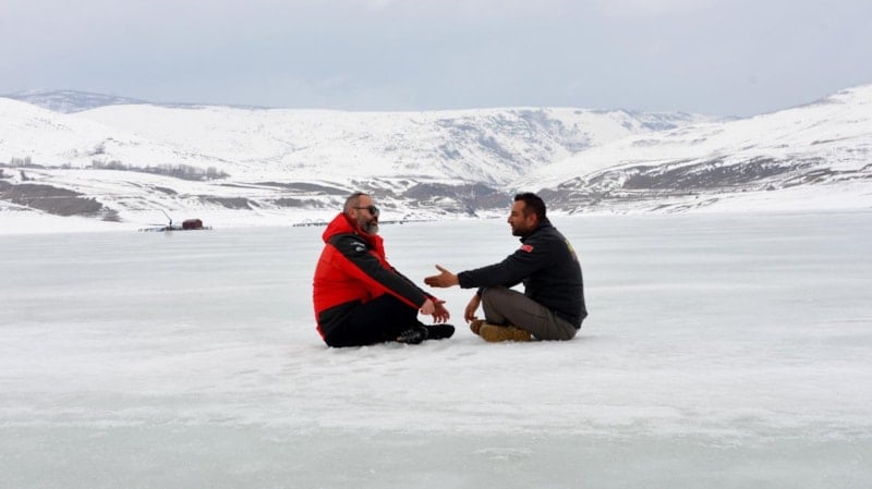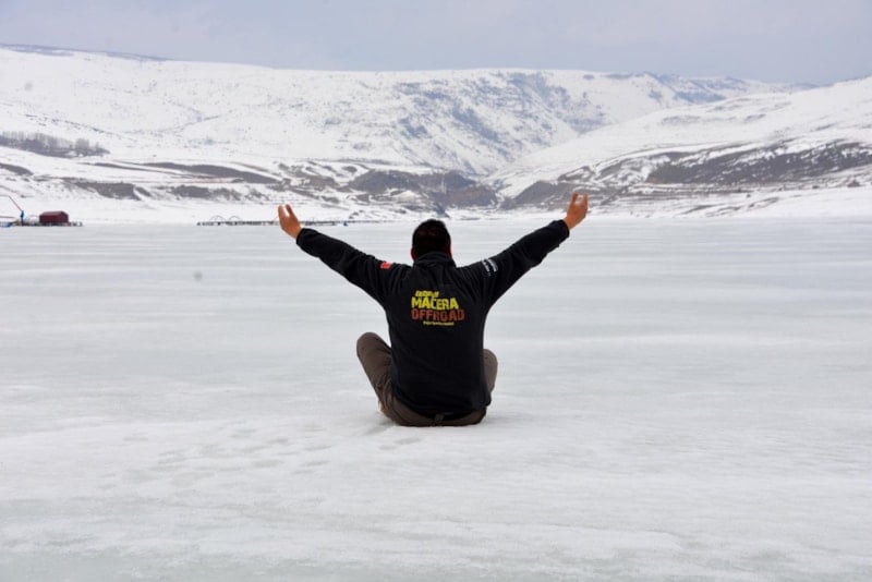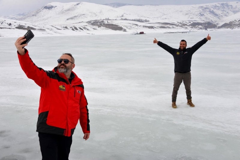 Üyeler, Demirdöven Barajı’nın buz tutan yüzeyinde gezerek bol bol fotoğraf çekildi.