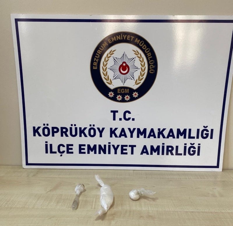 İl Emniyet Müdürlüğü Köprüköy İlçe Emniyet Amirliğince uyuşturucu ile mücadele kapsamında uyuşturucu satan veya kullanan şahısların yakalanmasına yönelik yapılan çalışmada Şehitler Mahallesi Bahattin Karasu Caddesi üzerinde şüpheli bir araç durduruldu.
