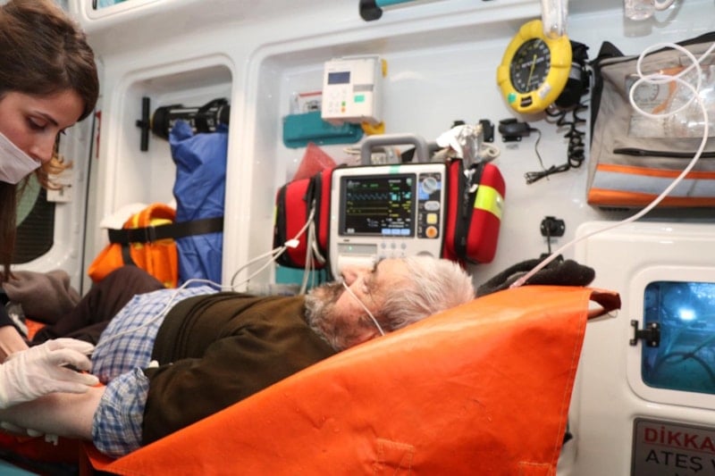İlk müdahalesi evde yapılan Bektaş, sağlık ekipleri tarafından yolun açık bölümünde bekleyen ambulansa kadar taşındı.