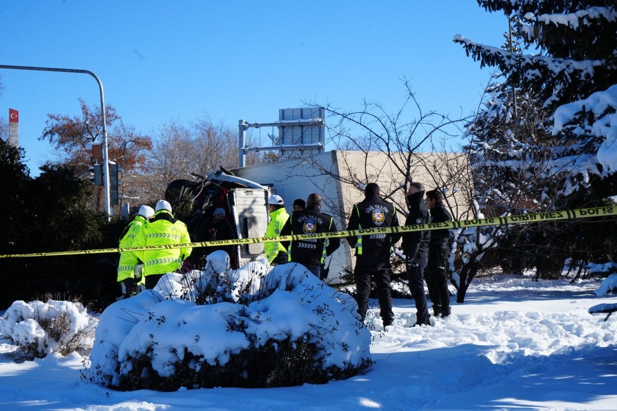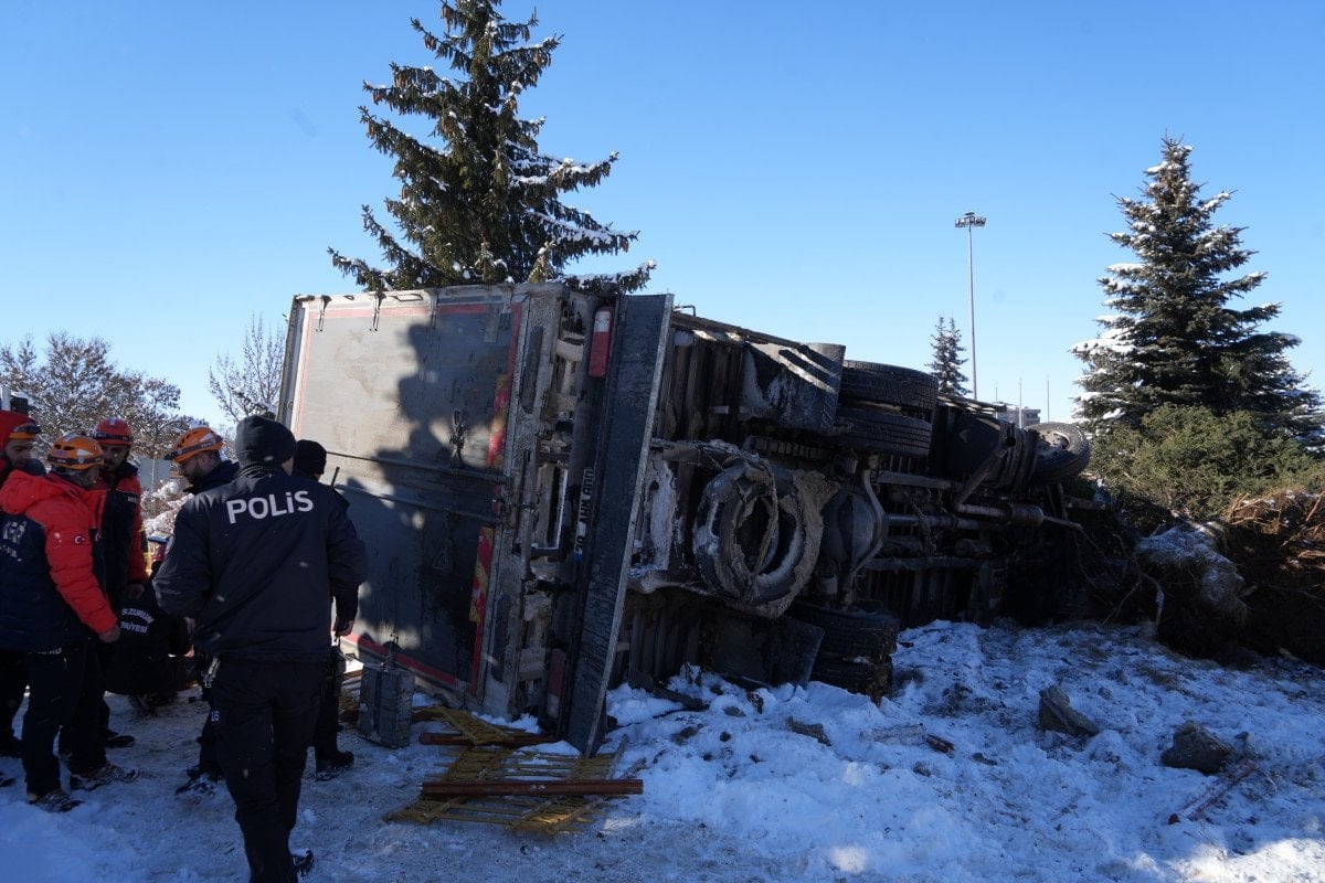 Ekipler, devrilen kamyonun altında kimsenin kalıp kalmadığını kontrol etti.