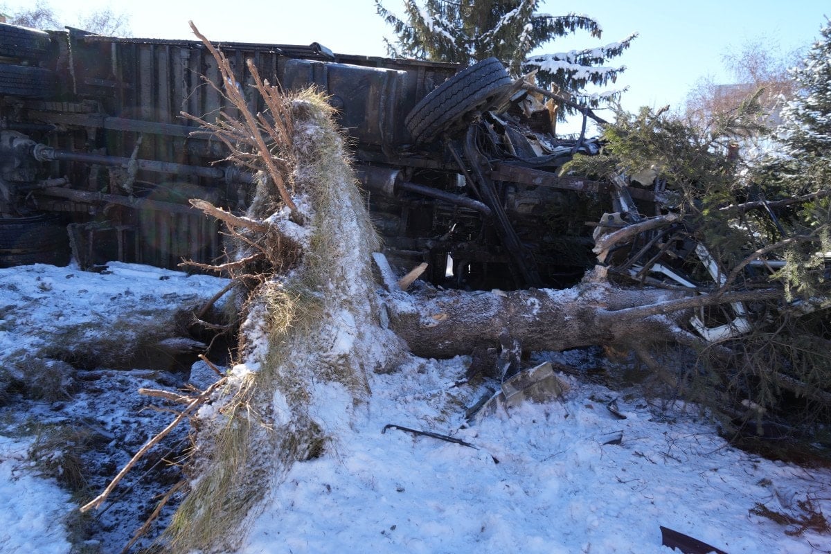 - Kamyonet ağaca çarptı ve ağaç kökünden söküldü.