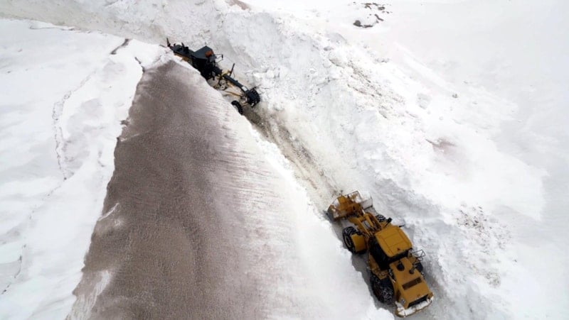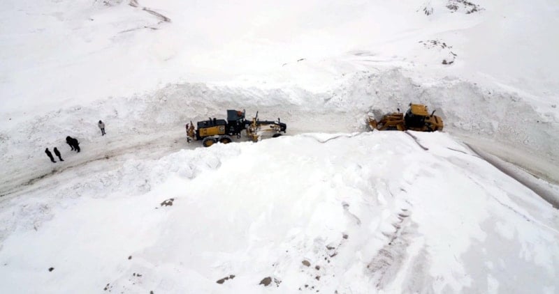 Yer yer iş makinelerinin boyunu geçen karı temizleyen ekipler, kalan 33 köyün yolunu açmak için çalışmasını sürdürüyor.