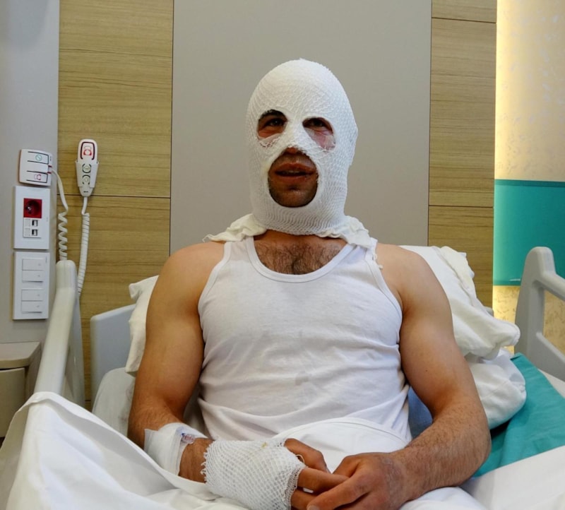 Nişanlısına hediye paketi yapmak için kullandığı sprey boya kutusunun patlaması sonucu hastanelik olan Muhammet Yılmaz'In el parmakalarında, yüzünde ve boğazında yanıklar oluştu.