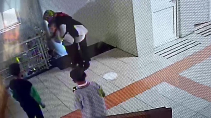 Yaşananlar okulun güvenlik kamerasına da yansıdı.