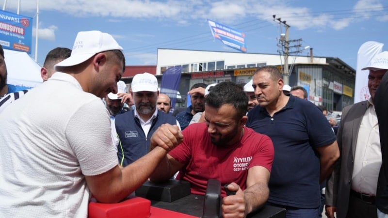 Yakutiye ilçesinde oto sanayide usta, kalfa ve çırakların katılımıyla düzenlenen bilek güreşi turnuvası, kıyasıya mücadeleye sahne oldu.