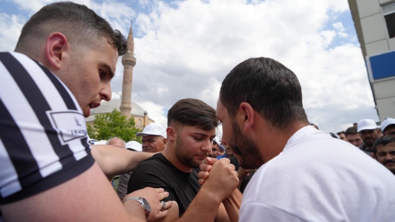 Erzurum'da Yakutiye Belediyesi ile Gençlik ve Spor Müdürlüğü tarafından düzenlenen bilek güreşi turnuvasına sanayi sitesi çalışanları büyük ilgi gösterdi.