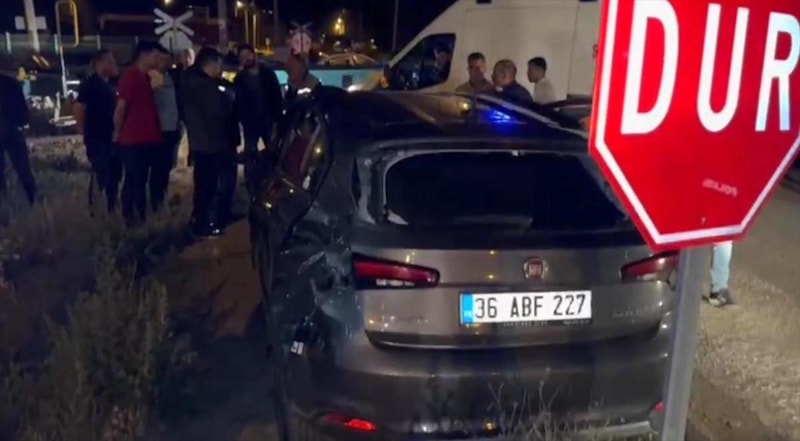 Erzurum'da yük treninin çarptığı otomobilde hasar meydana geldi. Otomobil sürücüsü yara almadan kurtuldu.
