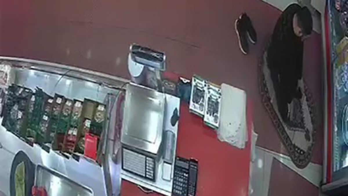 Ne olduğunu anlayamayan işletme sahibi, büyük bir gürültüyle namaz kılarken irkildi, ardından namaz kılmaya devam etti.