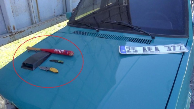Araçta yapılan aramada, bir beyzbol sopası ve maksat dışı kullanılan 2 bıçak ele geçirildi.