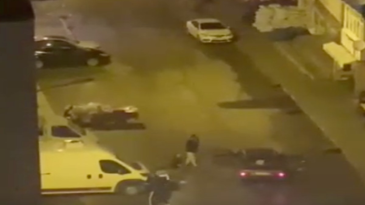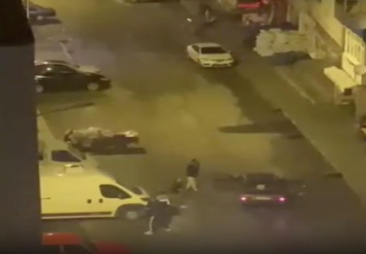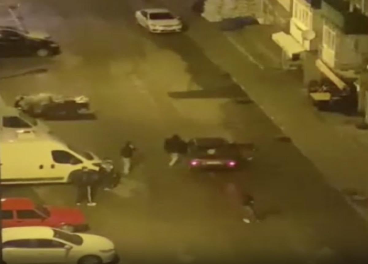 Olay, başka bir apartmanda oturan kişi tarafından cep telefonuyla görüntülenirken, şüpheliler geldikleri otomobille uzaklaştı.
