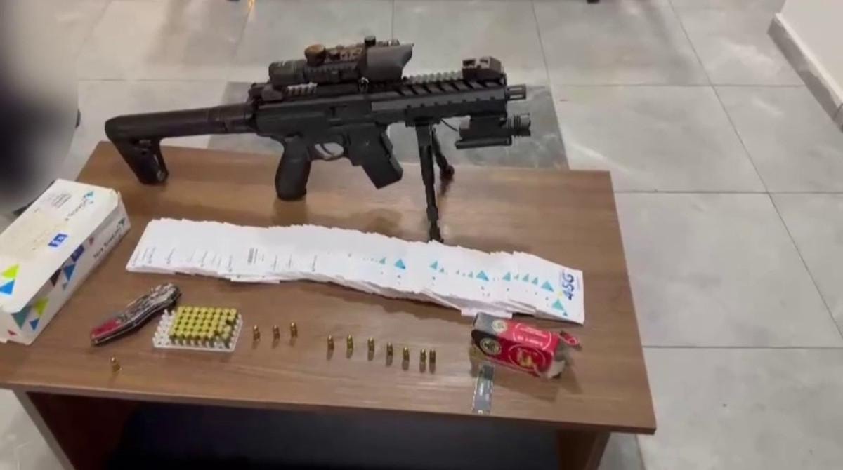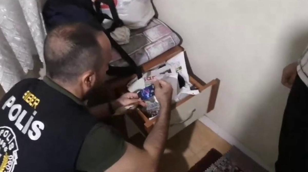 Yapılan aramalarda çok sayıda dijital materyal, 5 adet ruhsatsız tabanca ve çok sayıda tabanca fişeği, 30 adet sentetik uyuşturucu, başkalarına ait banka kredi kartları ve çok sayıda sim kart ele geçirildi.