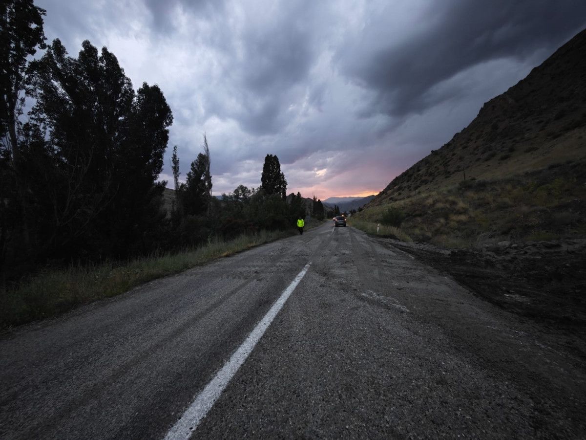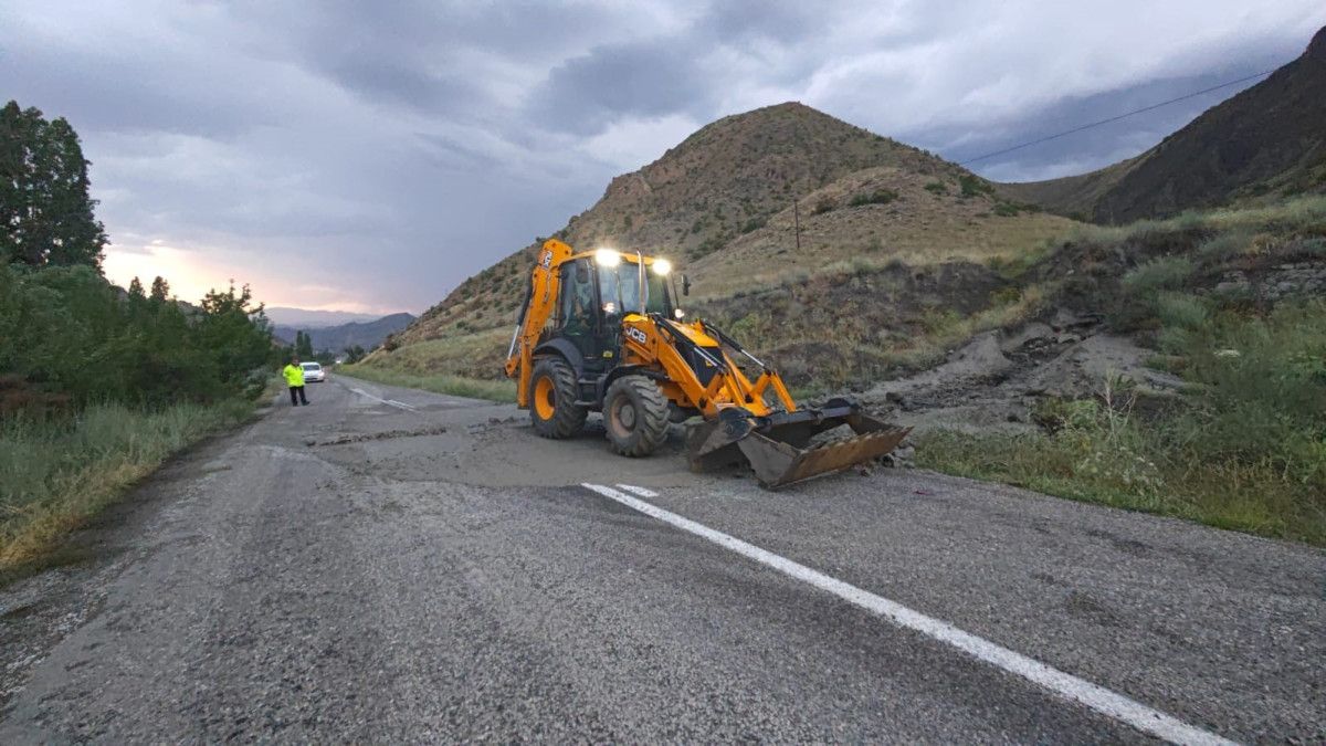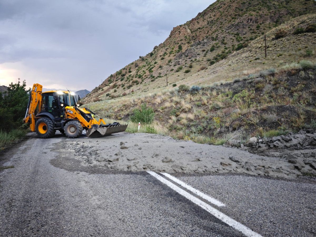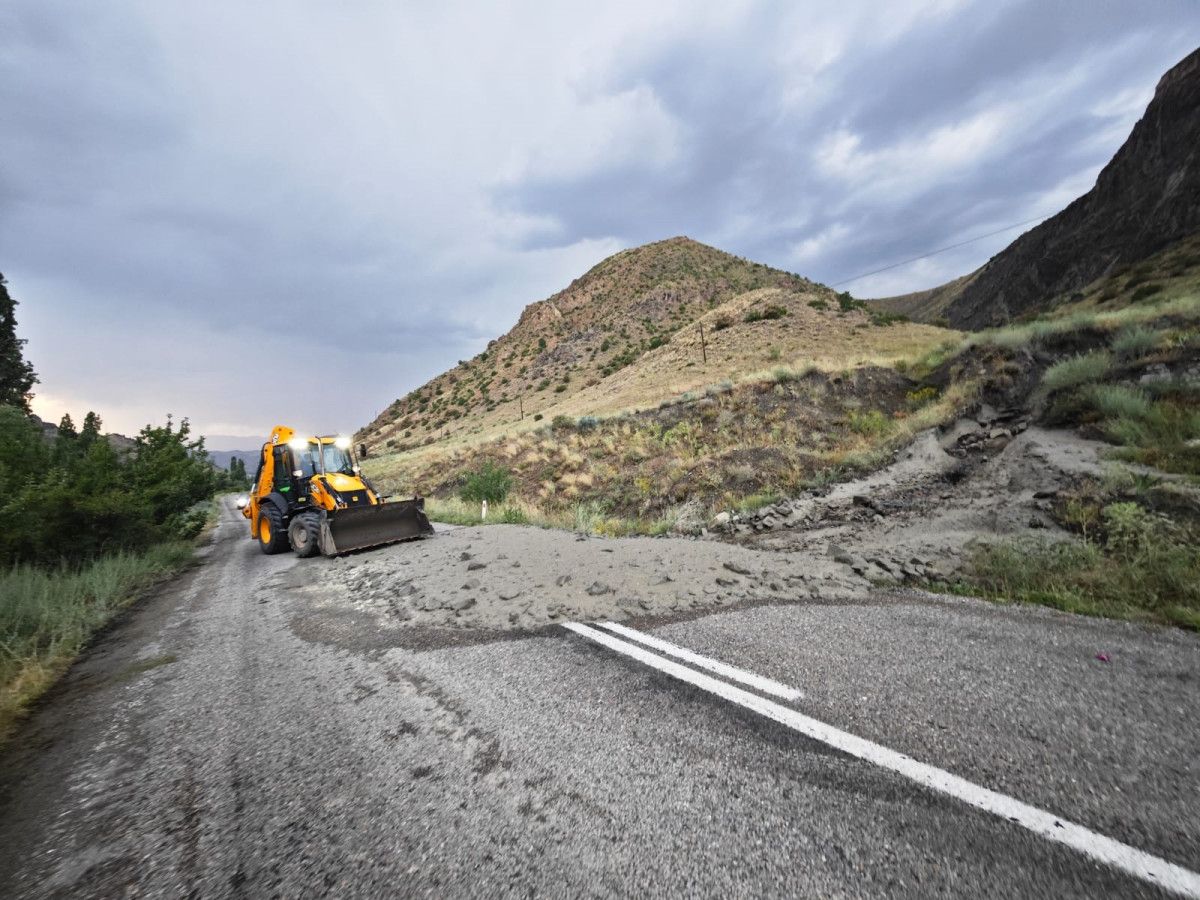 Sel suları, çevredeki gevşek toprak ve taşları yola sürükleyerek yolun bir kısmının kapanmasına neden oldu.