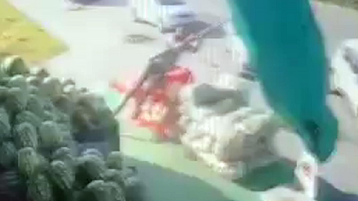 İş yerinin güvenlik kamera görüntülerine de yansıyan olayda Abuç, manavın önünden 3 metre kadar havalanıp, 5 metre uzaklıktaki refüje kadar uçtu.